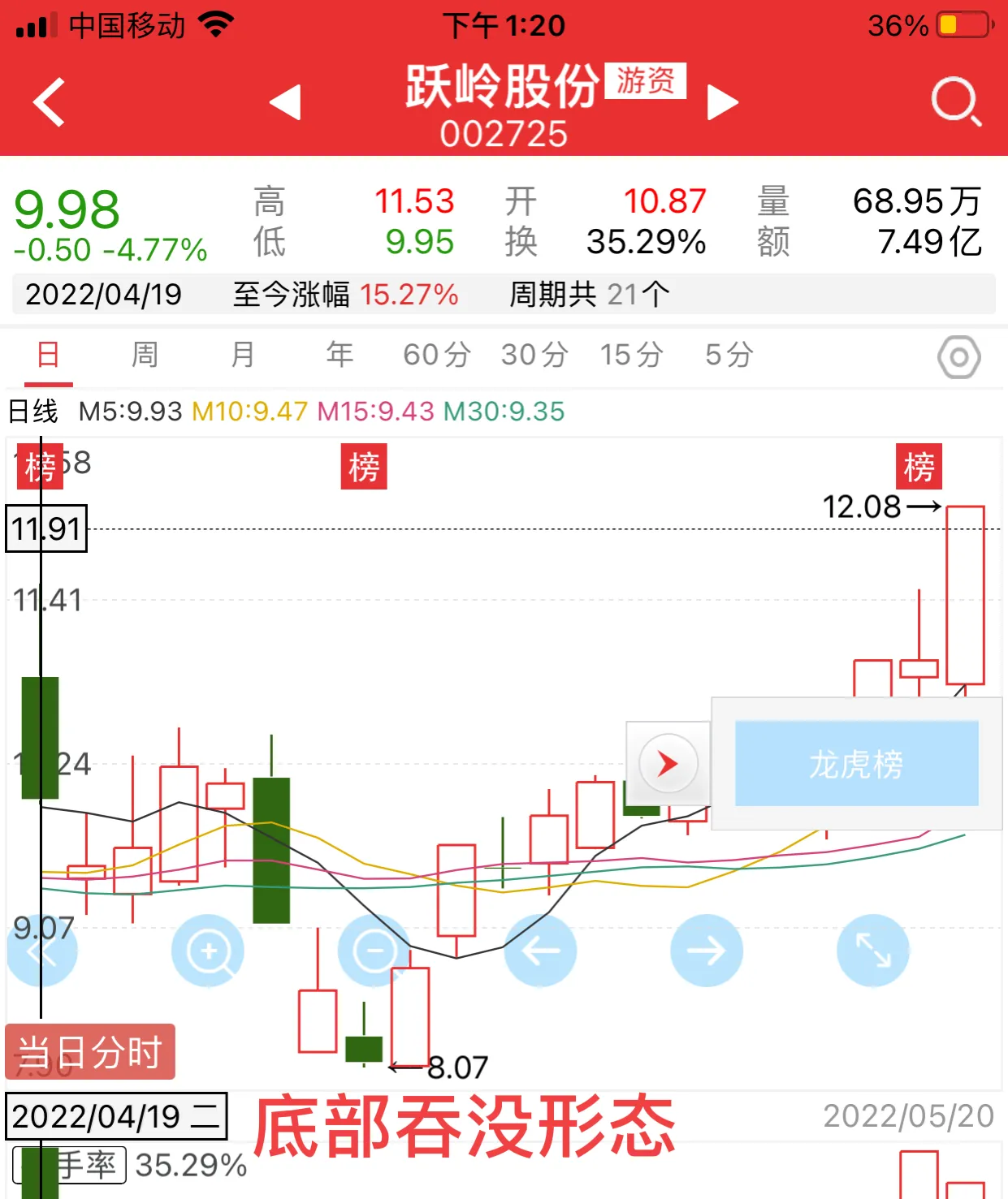 5、 “看涨吞没形态”:一段比较明显的下跌行情中缩量之后再次出现一个大阳线,覆盖了前面两天的阴线—(缩量阴线)的全部。出现这样的形态之后预示着行情开始反转。吞没阳线出现之后行情继续改变方向,开始慢慢上涨。这些战法只能作为参考,必须和板块和情绪资金相结合。每一个战法是完美的,都是综合看待才能等到结果。