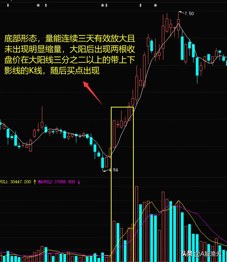 2、三根阳线的量能要放大,且相对均匀,不能出线明显的量能萎缩。如果大阳后出现明显的倍量或者萎缩,不选择。