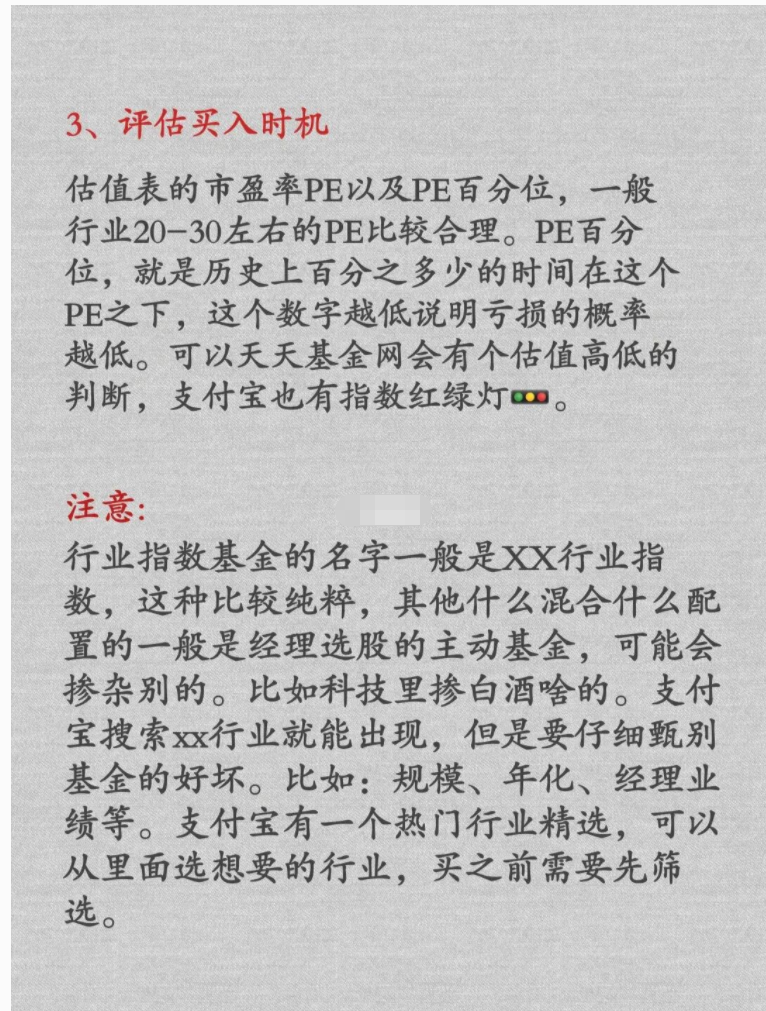 估值表的市盈率PE以及PE百分位,一般行业20-30左右的PE比较合理。PE百分位,就是历史上百分之多少的时间在这个PE之下,这个数字越低说明亏损的概率越低。可以天天基金网会有个估值高低的判断,支付宝也有指数红绿灯。