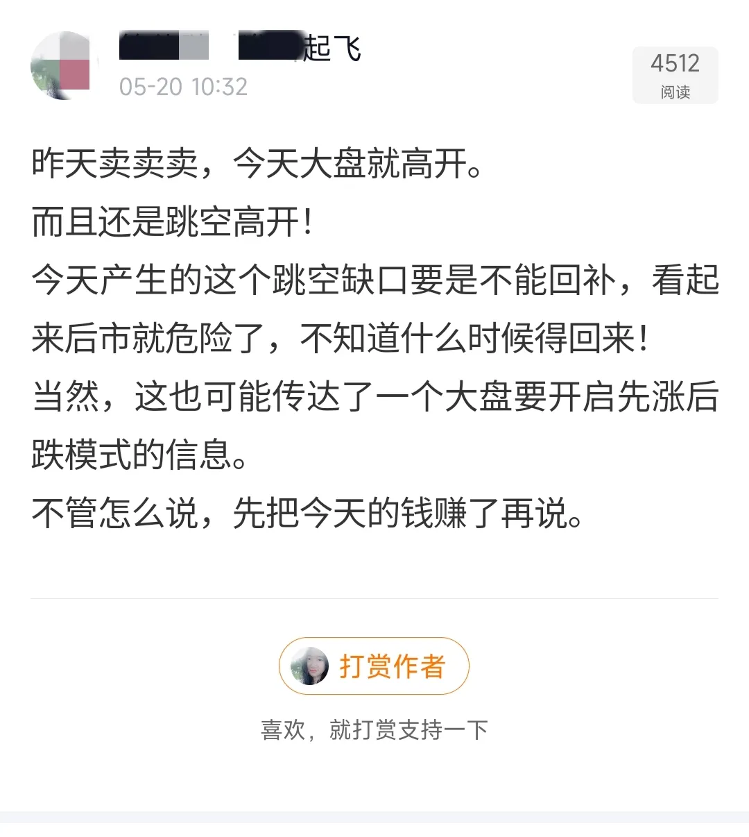 5月20号那天,我以为的黑五变成了红五,大盘还出乎意料地跳空高开了。