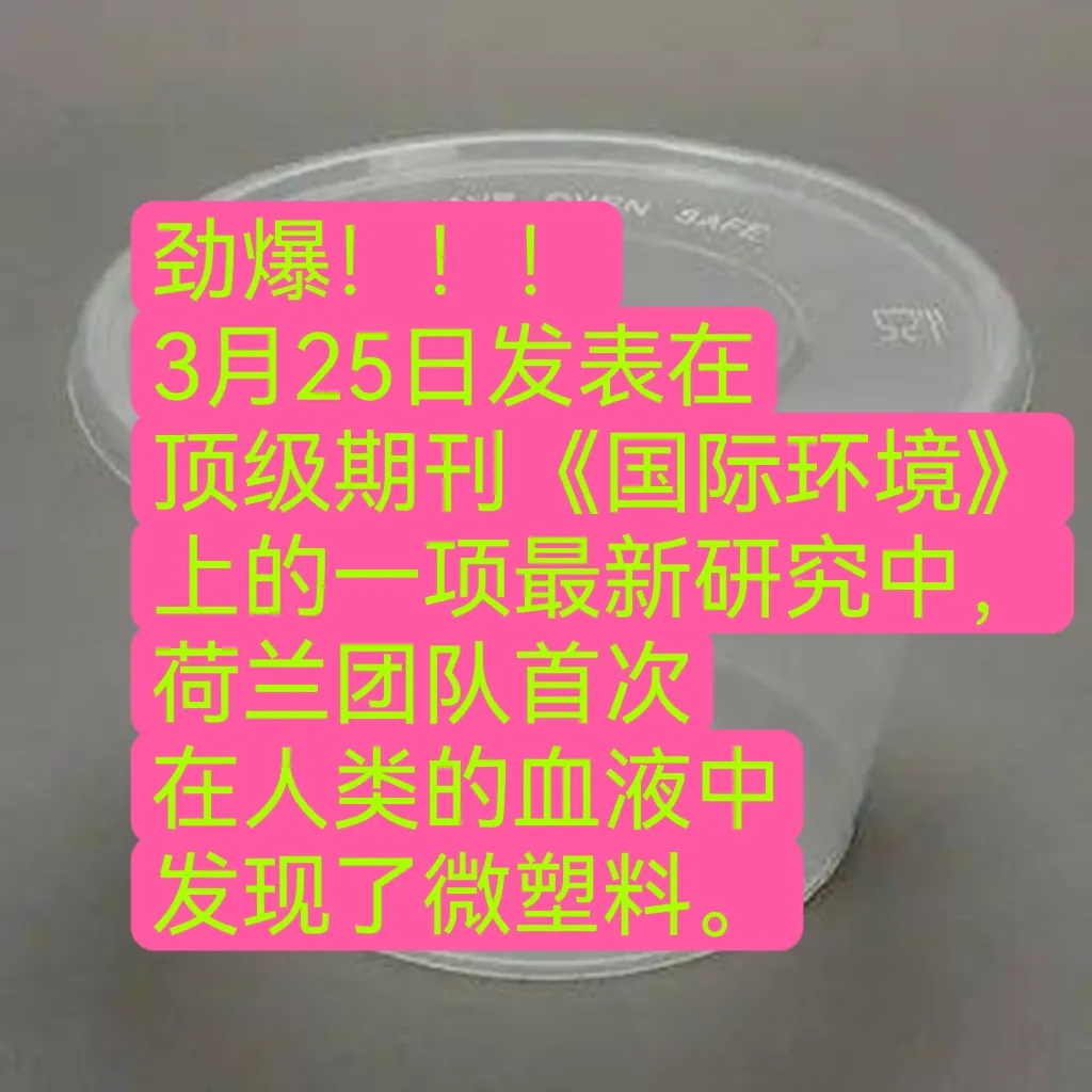震惊!!!人体血液里怎么会有微塑料颗粒,3月25日发表在顶级期刊《国际环境》上的一项最新研究中,荷兰团队首次在人类的血液中发现了微塑料,其中77%的健康志愿者血液中检测到了每毫升1.6微克的微塑料。这里说的是肉眼看不到的极小的塑料颗粒,是经过大自然冲刷分解,已经融入到了环境中的微小的颗粒。