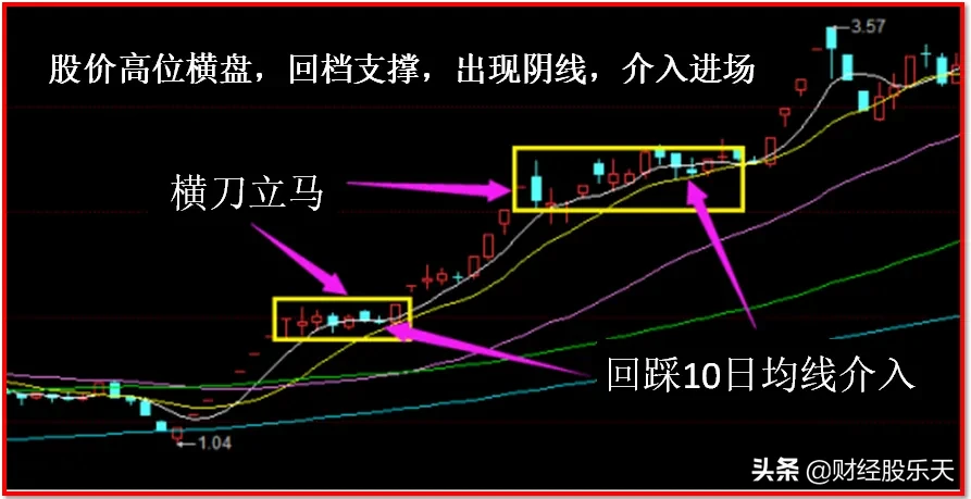 炒股的人都知道,当股价出现快速的上升趋势,此时进场容易追高被套。这里告诉大家一个判断信号:当股价放量大阳线且突破新高后,盘整时间不超过15天,如果K线在10日均线附近,出现阴线踩,那么接下来往往是大阳线突破!