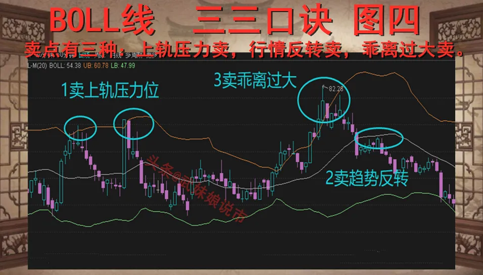 在BOLL线使用过程的时候需要明白它包括了哪几种形态,形态出现后预示着行情会出现什么样的走势,我总结了出来并弄成了口诀。如下图1-6所示