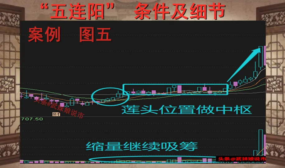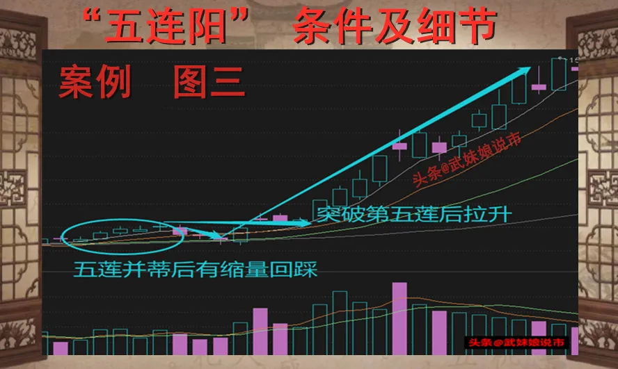 五连阳:通俗点讲就是连续5个交易日的收盘价高于开盘价。