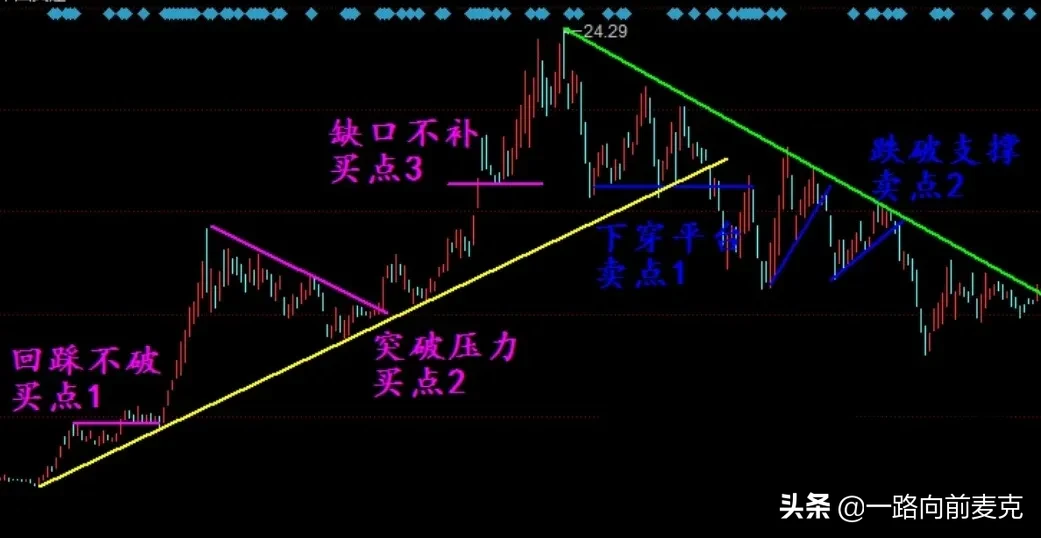 2,从下至上,回踩直线,增仓,远离直线,落袋为安。