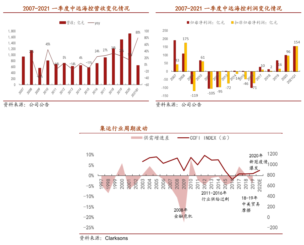 2017年后,公司进行战略转型,剥离干散货以及航运租赁、金额等业务,并充分整合集运以及码头资产,此时行业运力供给明显过剩现象逐步缓解,运价有所回升,公司业绩转正。