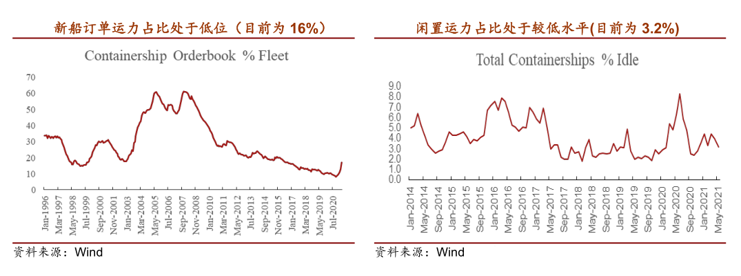 目前行业供给持续偏紧,港口拥堵进一步加剧运力紧张,从闲置运力来看,供给已无释放空间。