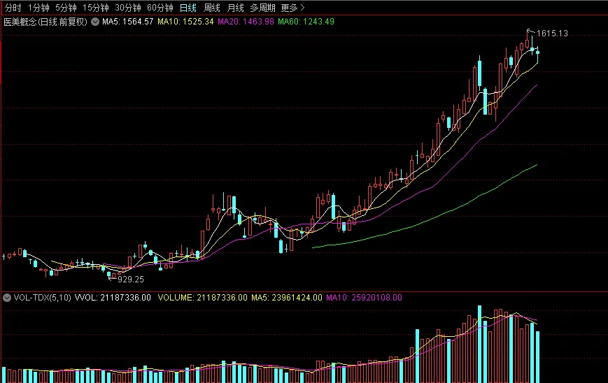 最后再强调一次医美概念,今天医美指数早盘低开低走,在10点半开始很快就修复拉红今天震仓的动作是非常明显的。本周整个医美板块表现的不是很抢眼,在我看来一方面是近期一些新题材的出现吸引了一些资金,另一方面近一段时间医美概念涨幅太大了,涨的也比较急,也是需要停下来休整的,这也是为了整个板块更健康的上涨。其实本周相对一些其他板块以及大盘走势,它的表现也是可圈可点的,接下来医美概念将会走趋势行情。