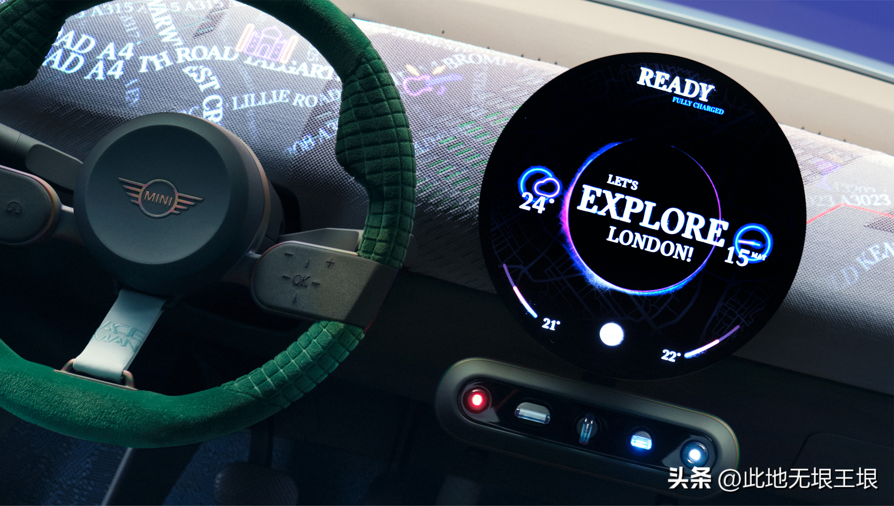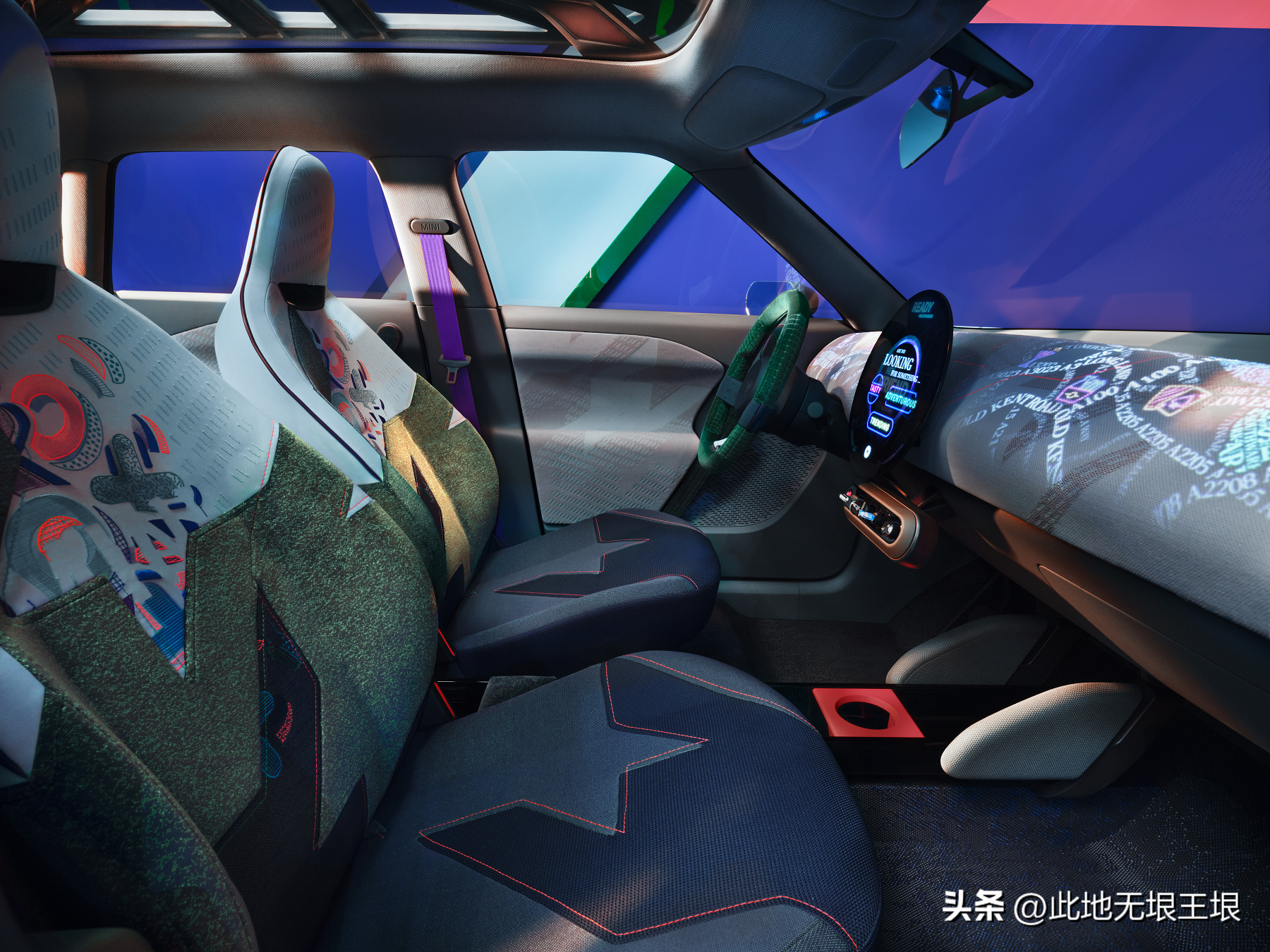 Aceman整体丰富多彩的颜色营造出了年轻、活泼的个性特征,加上极简的整体风格,再现了MINI最经典的信念,除了座椅、方向盘、变速杆以及一个圆形中置仪表,剩下的就是无与伦比的驾驶乐趣。