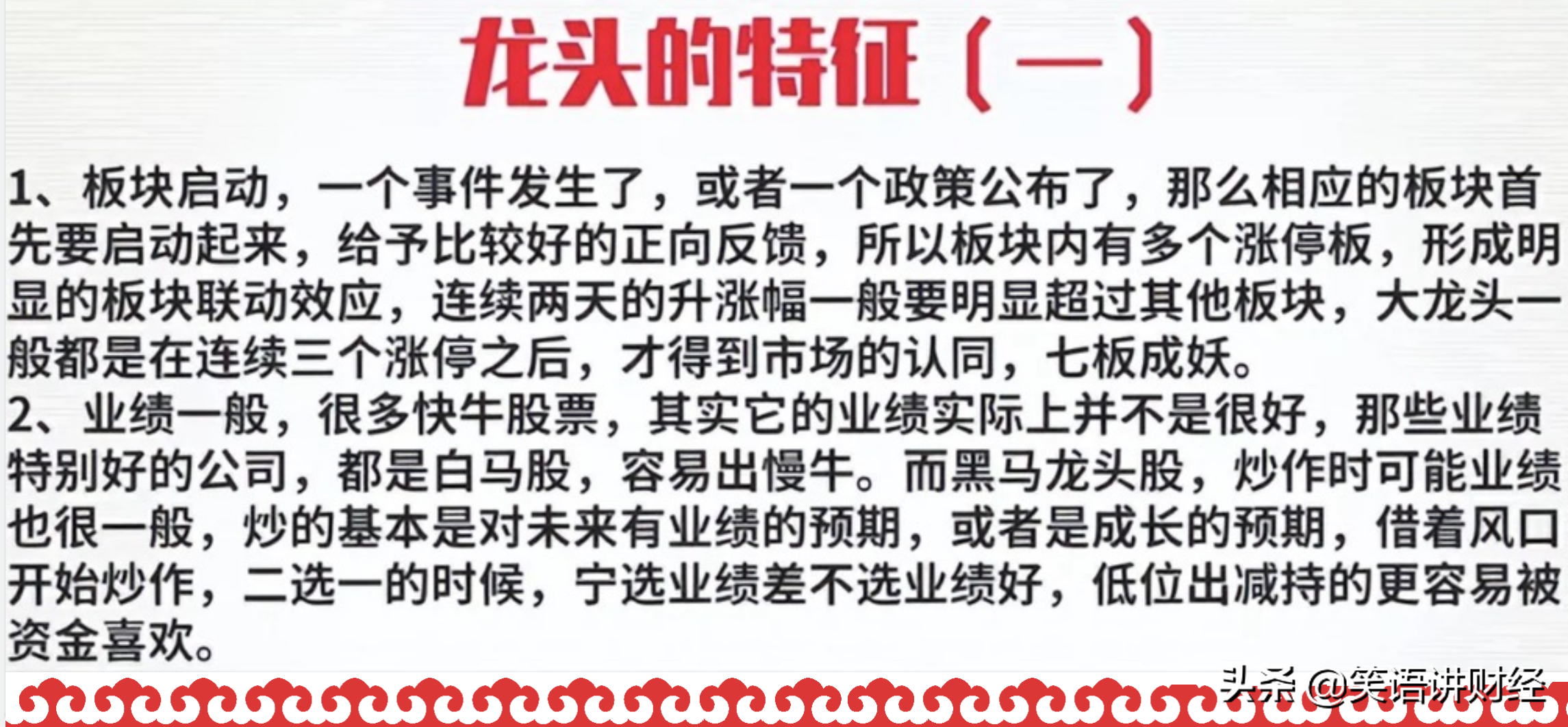龙头不是一开始就确定的,而是走出来的,一般一个板块有异动,会出现多个个股涨停,形成明显的板块联动效应。一般大龙头是在3个涨停板后,才受到市场的认同。