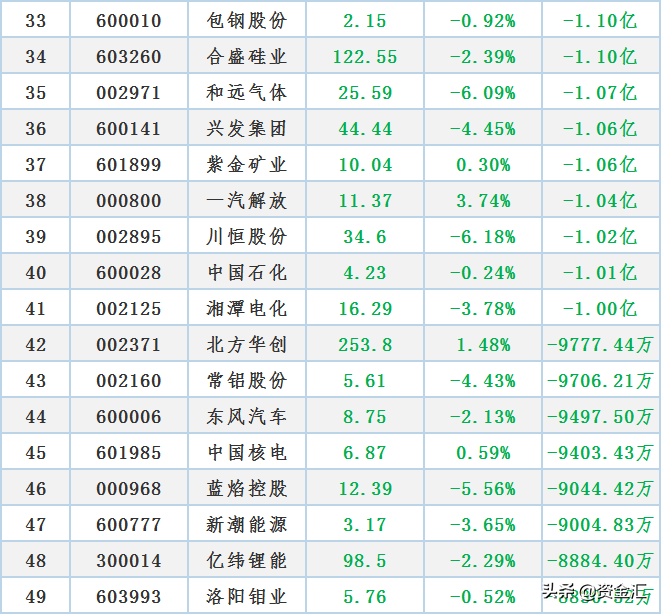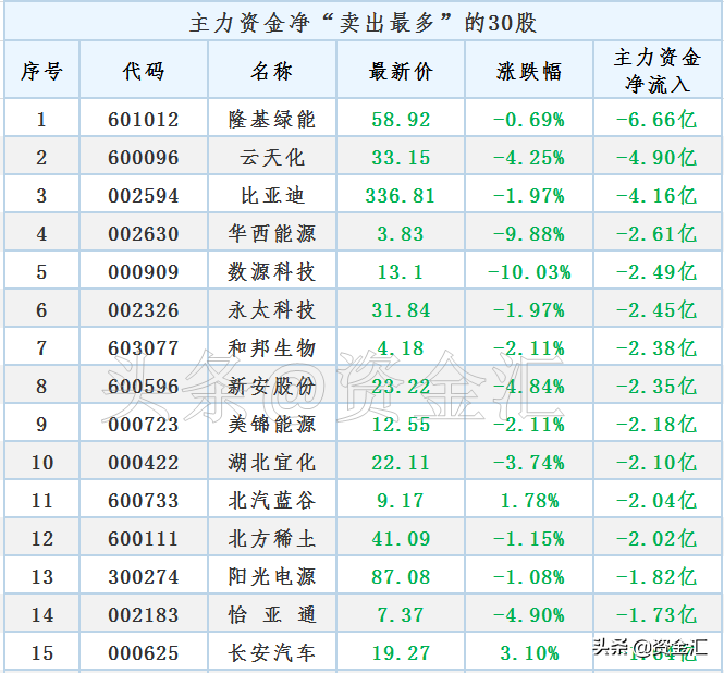 高位抛盘,不做“接盘侠”,主力资金“大幅卖出”30股,名单来了