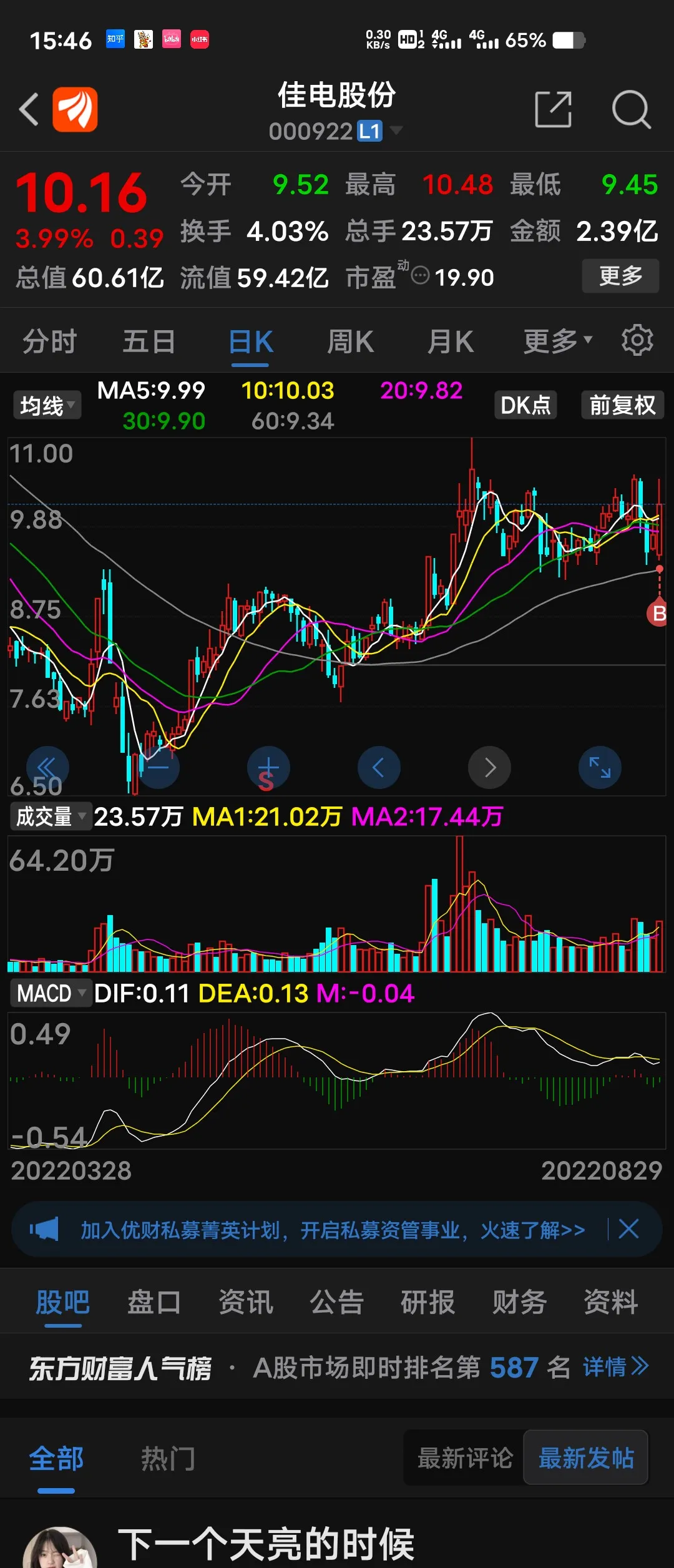 2.佳电股份:尾盘集合竞价10.16元买进近三成仓。