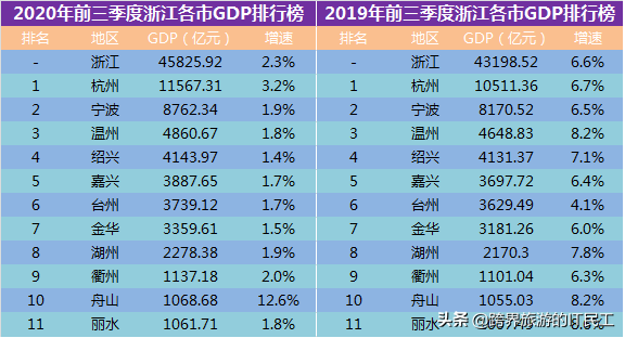 2020年前三季度浙江省11市公布GDP运行情况,可以预计宁波今年也会破1万亿元。