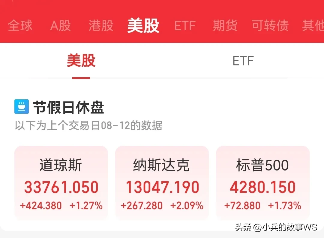 1、周五夜盘美股三大股指均全线大涨,纳指涨2.09%,标普500指数涨1.73%,道指涨1.27%。