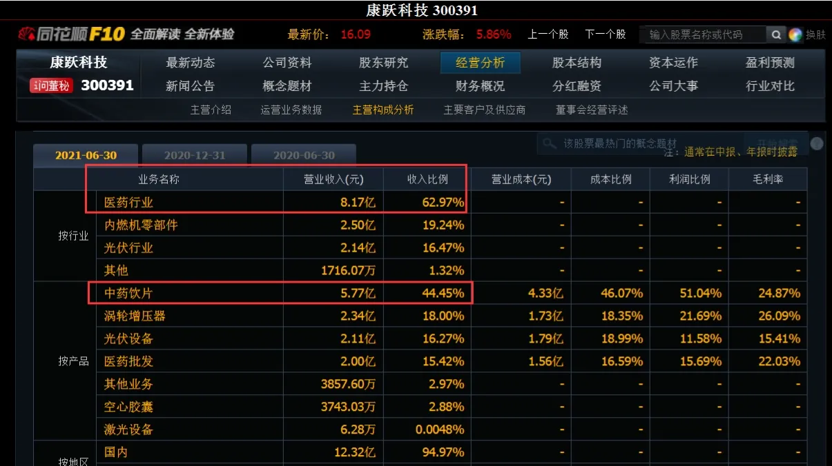 看着是一家科技名称的公司,实际上,它因为公司收购了一家中药公司长江星,成为一家以中药味主营的中医药公司,从主营收入构成也可以看出,医药收入占比目前是公司主要收入来源,而且主要是中药饮片。