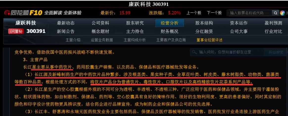 长江星主要从事中药饮片、药用胶囊生产销售,以及药品、保健品和医疗器械批发等业务。