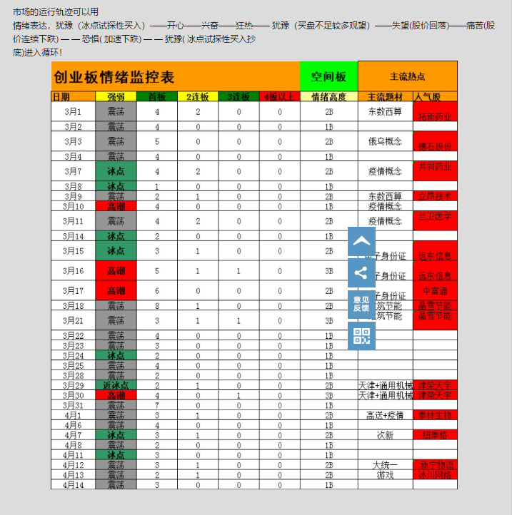 情绪表达,犹豫(冰点试探性买入)——开心——兴奋——狂热—— 犹豫(买盘不足较多观望)——失望(股价回落)——痛苦(股价连续下跌) — — 恐惧( 加速下跌) — — 犹豫( 冰点试探性买入抄