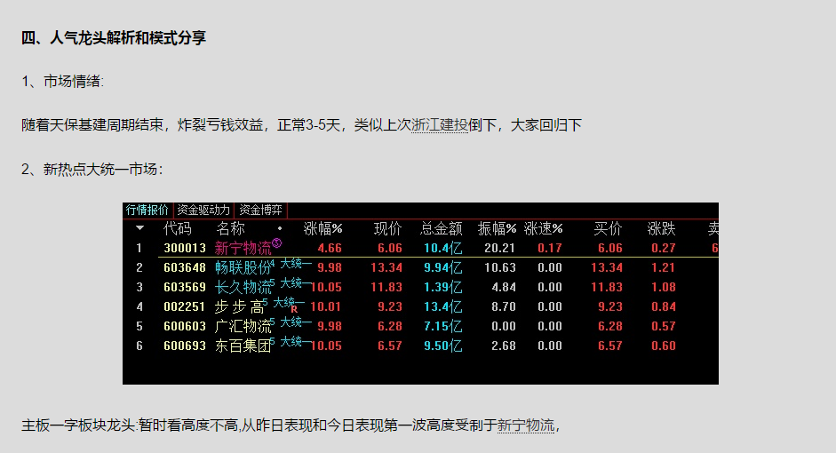 主板一字板块龙头:暂时看高度不高,从昨日表现和今日表现第一波高度受制于新宁物流,