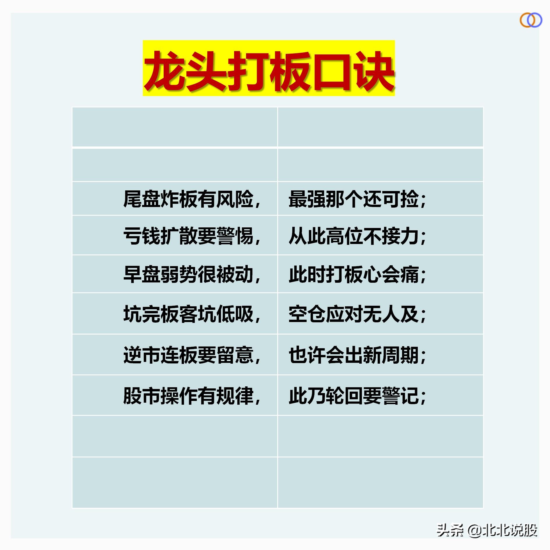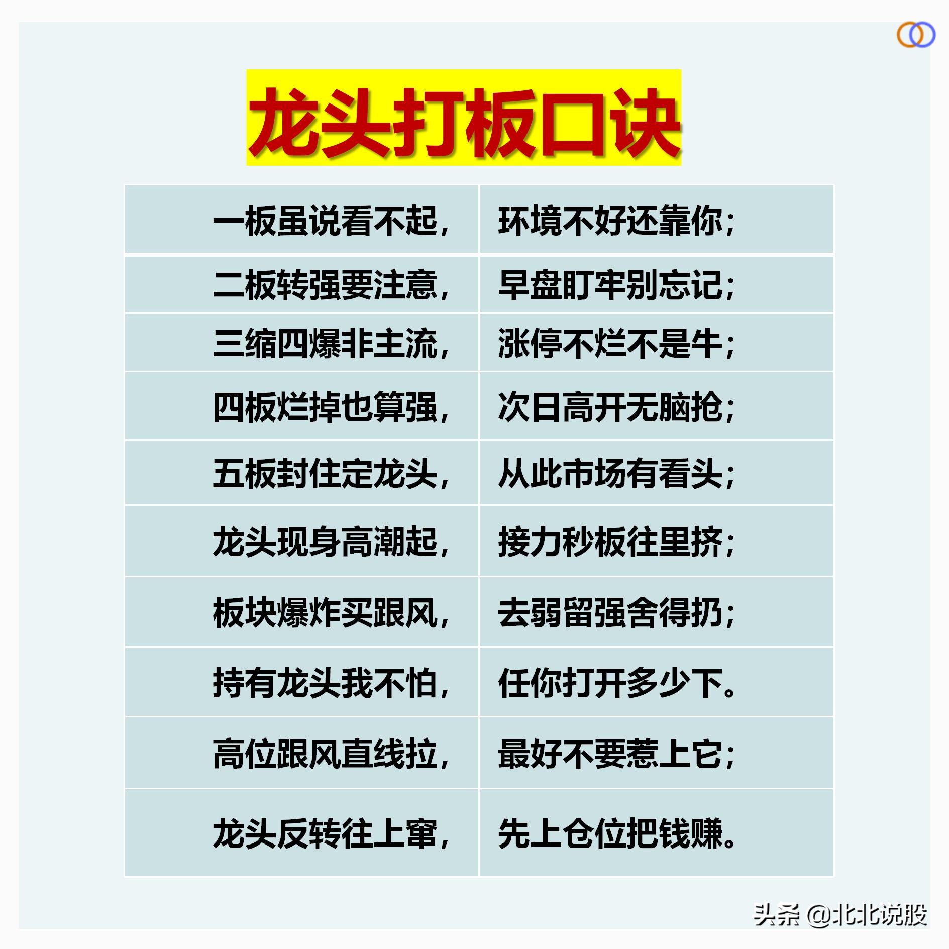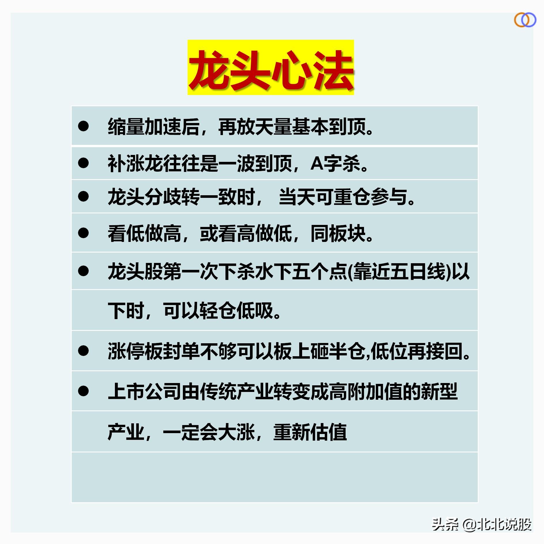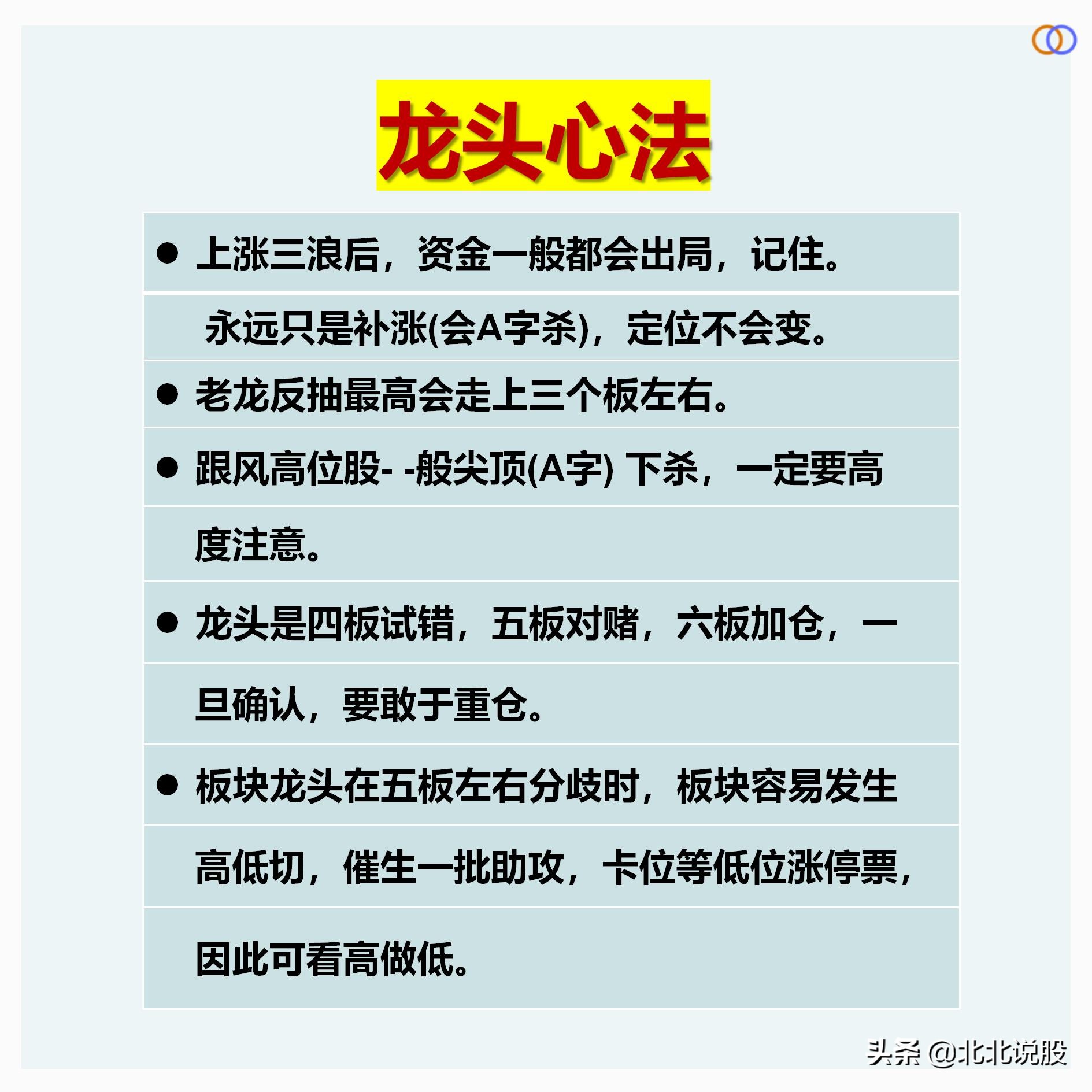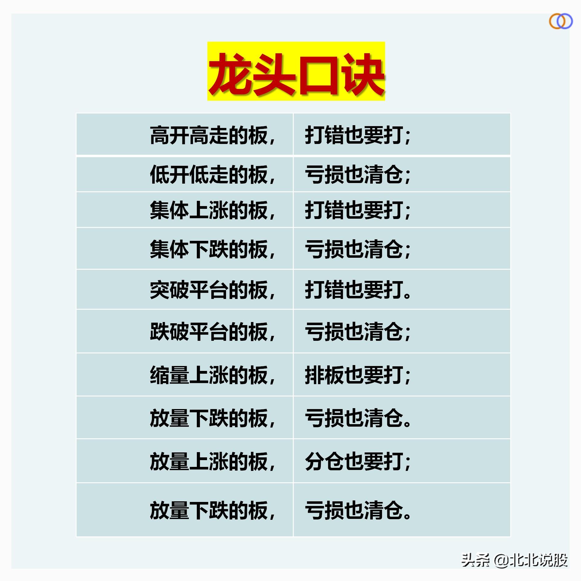 清楚以上内容后,再去看北北总结在图片里的龙头口诀,能领悟得更快。觉得有用的朋友请点赞关注北北,感谢大家的支持。