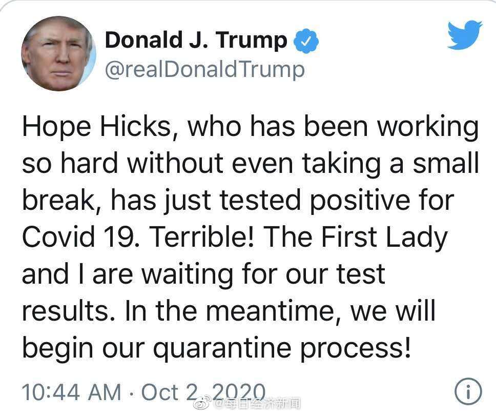 (更多消息持续更新,TY)特朗普夫妇确诊新冠,金融市场现大震荡(持续更新) | 每日经济新闻