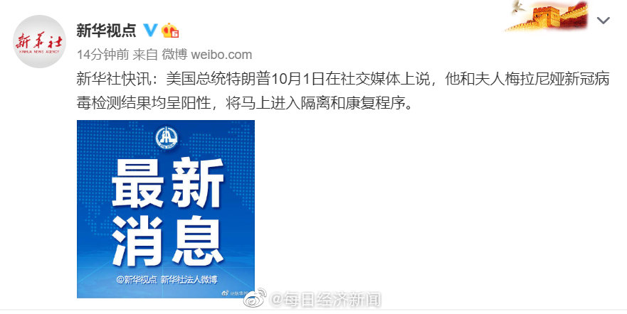 14:00 特朗普夫人梅拉尼娅发推宣布确诊消息