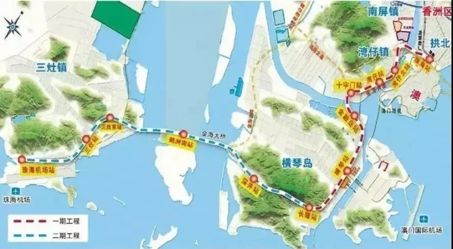 此外,金海大桥还是珠机城轨的一部分,三灶就是横琴西的第一站,未来从珠海机场延伸到广州,都可以一条线直达。