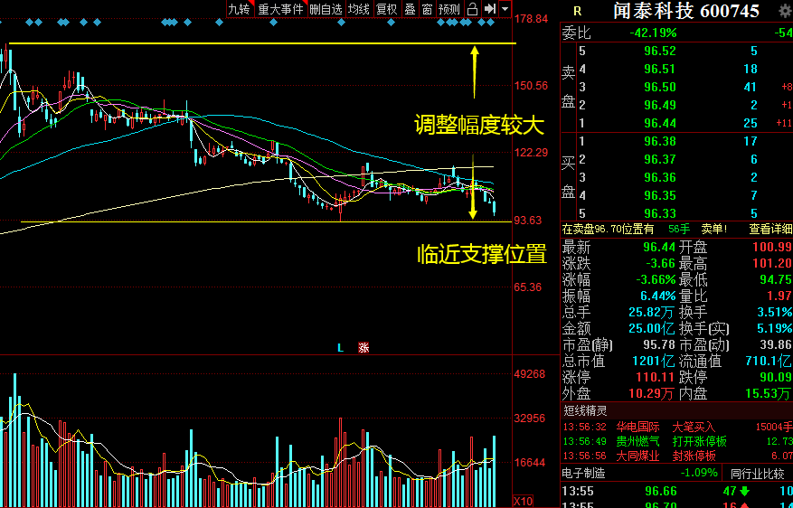 闻泰科技,属于前期的半导体中军,也算是中军中调整幅度最大的几只了。
