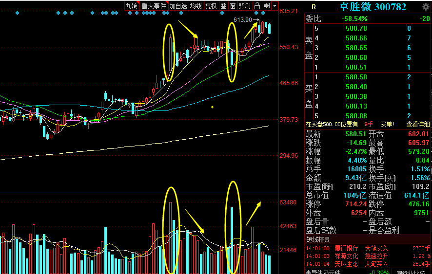 这种情况需要观察量能的变化,如果有量能的急剧放大就需要注意了。