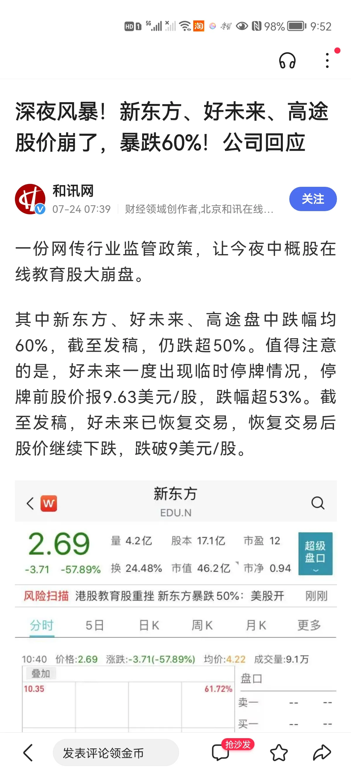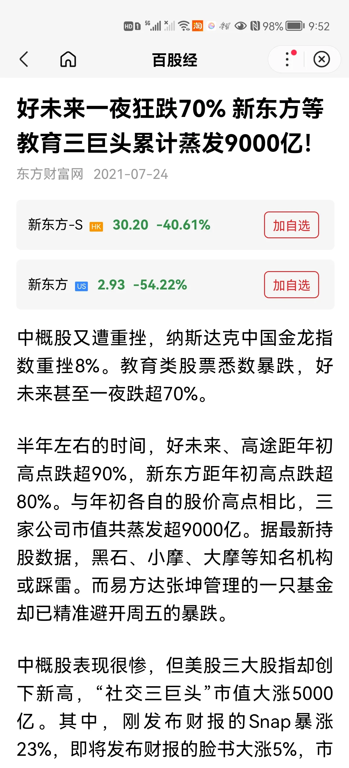 受教育厅禁止义务阶段校外补课的政策,教育股大跌。有的已经高达60—70%。新东方更是跌掉了1800亿。资本的选择就是方向。