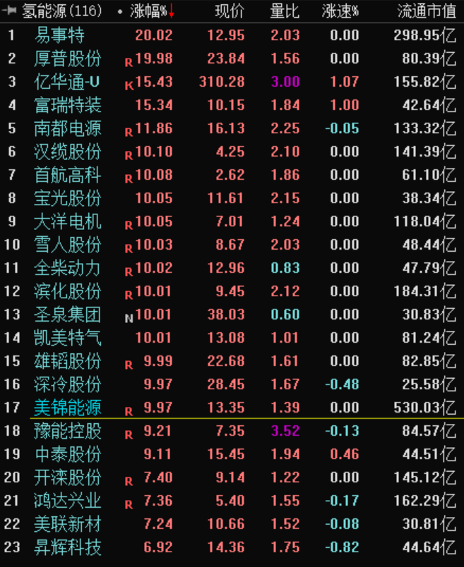 氢能概念股爆发!易事特、厚普股份、美锦能源等多股涨停!