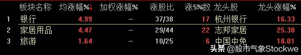 行业板块:银行,家居用品,旅游一周涨幅靠前。