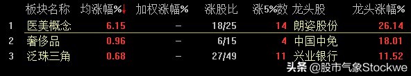 概念板块:医美概念,奢侈品,泛珠三角一周涨幅靠前。
