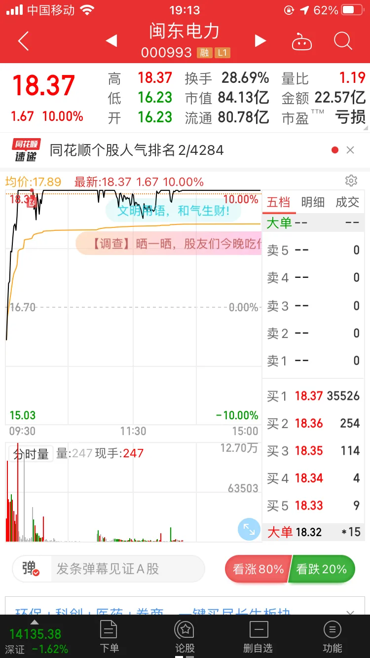现在说重点000993,电力板块龙头闽东电力,昨天成交回报显示游资大都割肉出逃,作手新一抄底6千万,大佬就是大佬,新生代游资的逆向思维不得不佩服。更让人佩服的是今天的成交回报显示新一格局锁仓,大烂板都没出货,这样的格局真的很大,有当年欢乐海岸的气魄,今天龙虎榜还有其它一线游资著名刺客等入场,我觉得现在的作手新一就如江湖老大,不仅仅图钱,也在乎名声,要知道打造一个善庄的名声是放弃很多利润的。