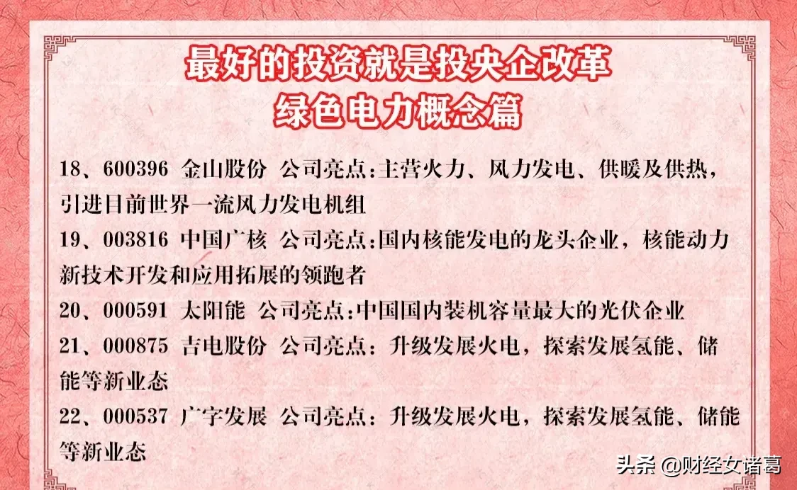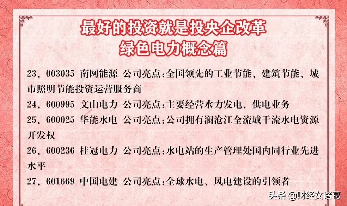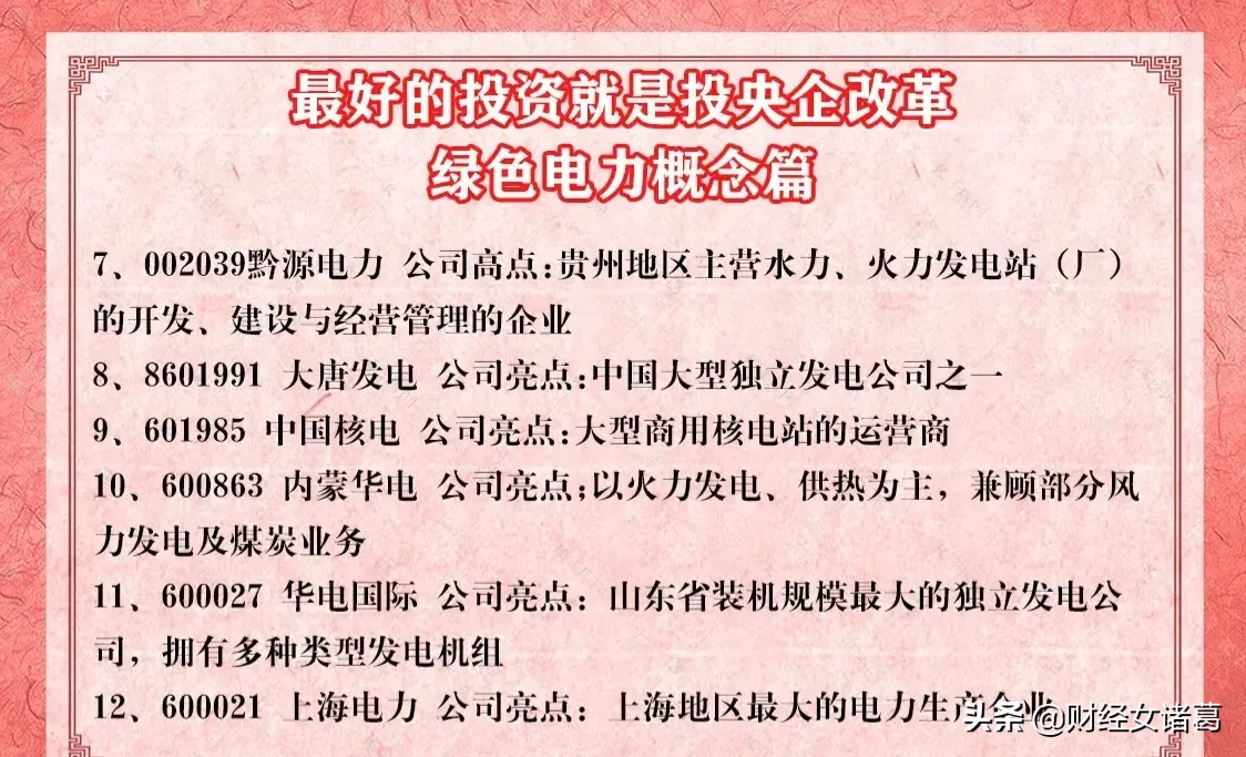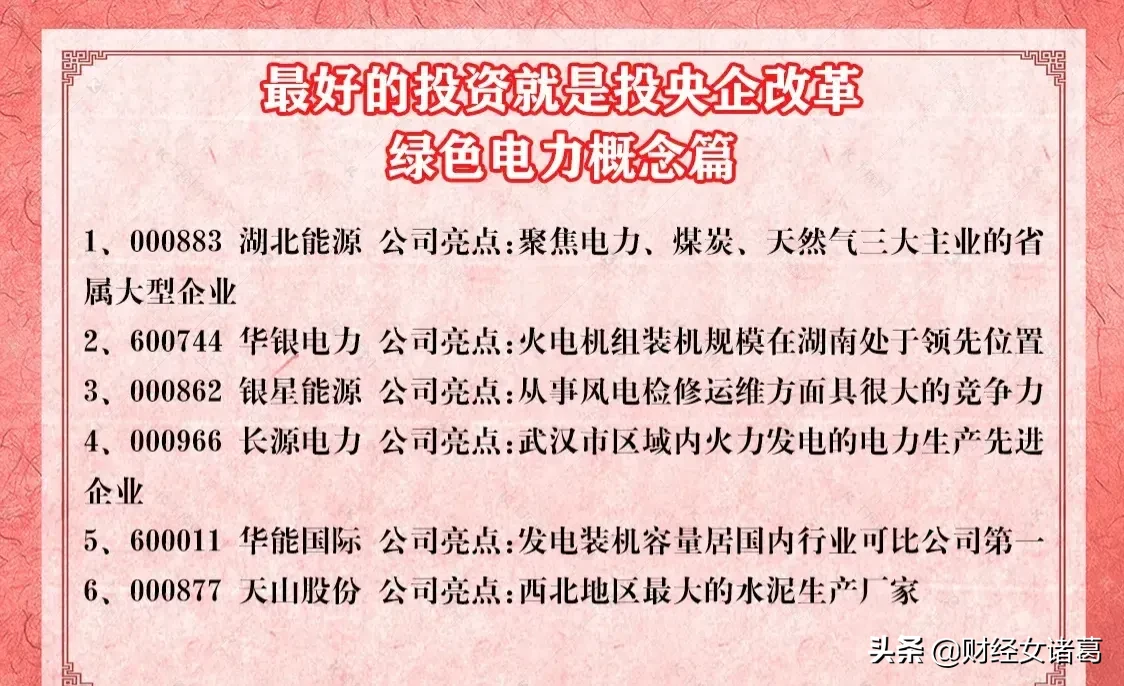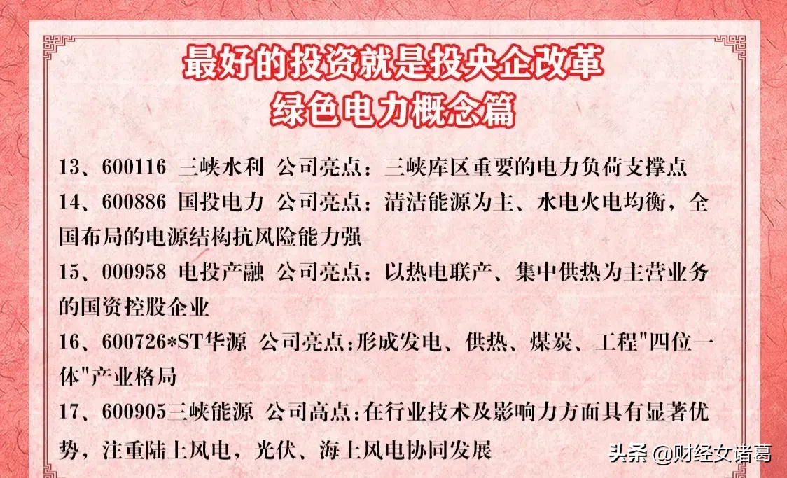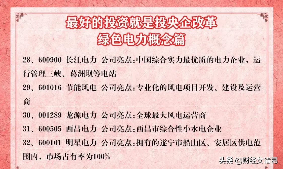A股:花了3个小时将市场上具有“背景”的32家绿色电力龙头企业整理了出来!价值千金,建议收藏起来慢慢看。