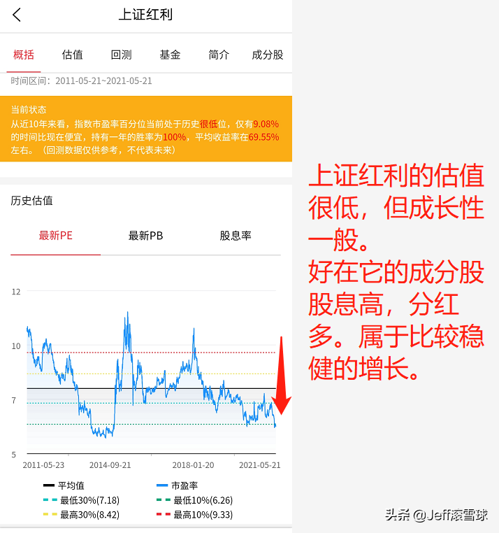 那有一些处于低估值区间的行业或概念,也不是就能无脑投。比如“上证红利”(图8),虽然它估值低、分红多,股息高,但是他们多年成长性一般,只能说是稳健,要组合配置。