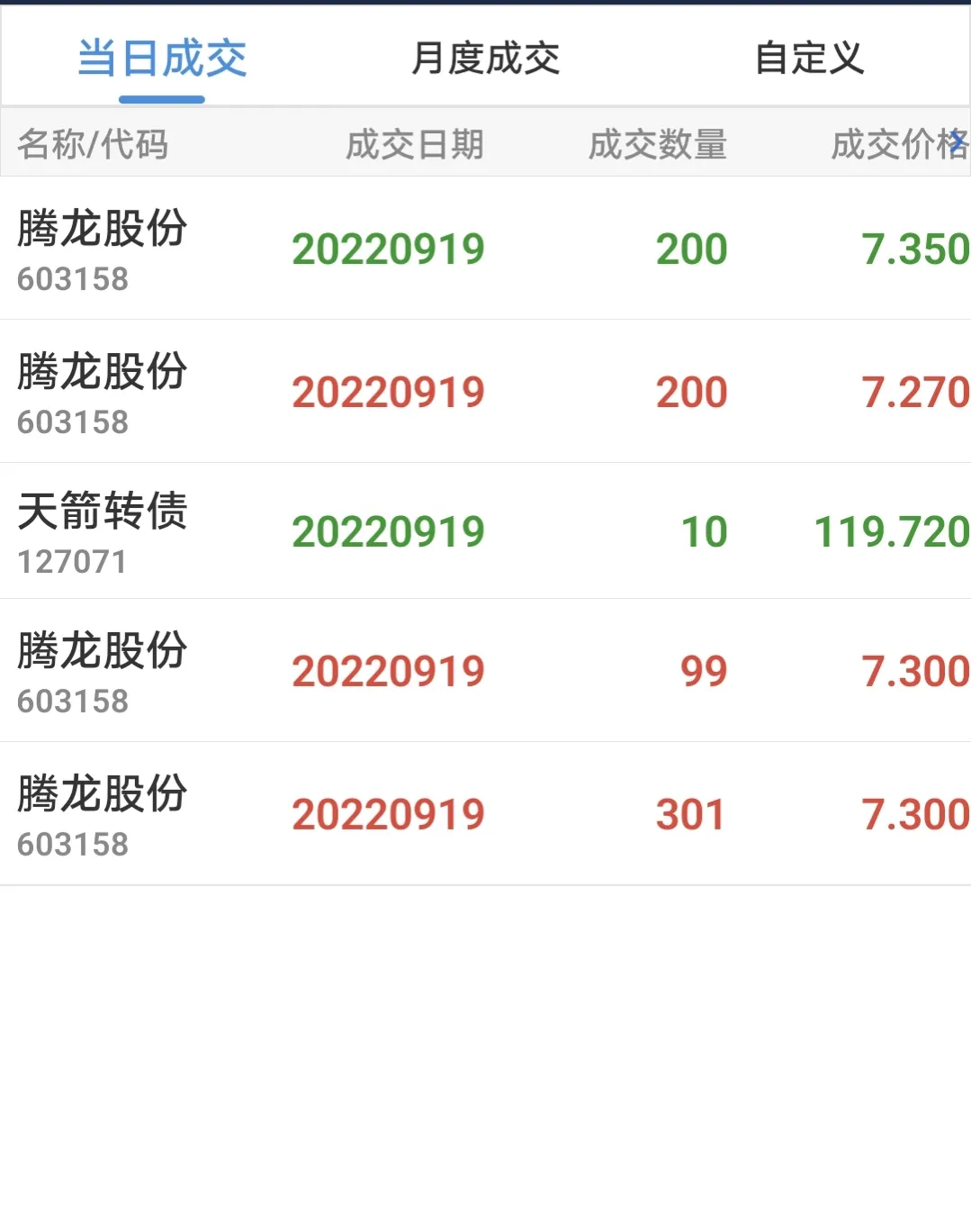 上午还卖掉了天箭转债10张,赚了近200元,利用这个资金又在7.27元补了200股腾龙股份,没有想到帐户只剩下50元了,中签的常银发债不够缴纳本金,只好下午又在7.35元卖掉了200股腾龙股份,这样的一折腾,又多亏损几十元手续费。
