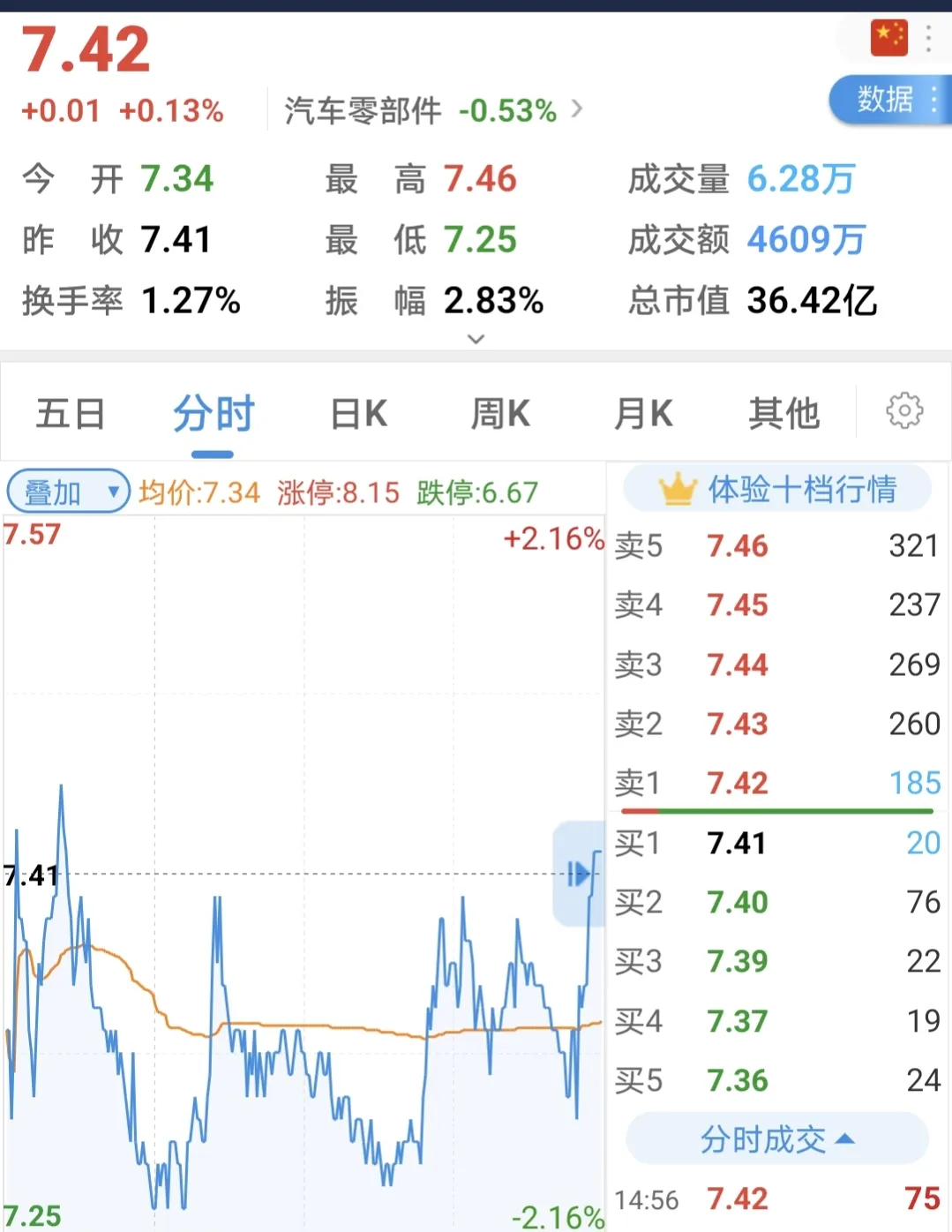 全天交易4次,腾龙上午开盘后在下跌的中途,以7.30元补仓400股,腾龙全天最低价7.25元,最高7.46元,尾盘不知道什么原因,主力突然就拉了一下近0.12元,所以收盘少亏不少。