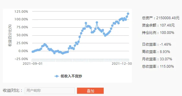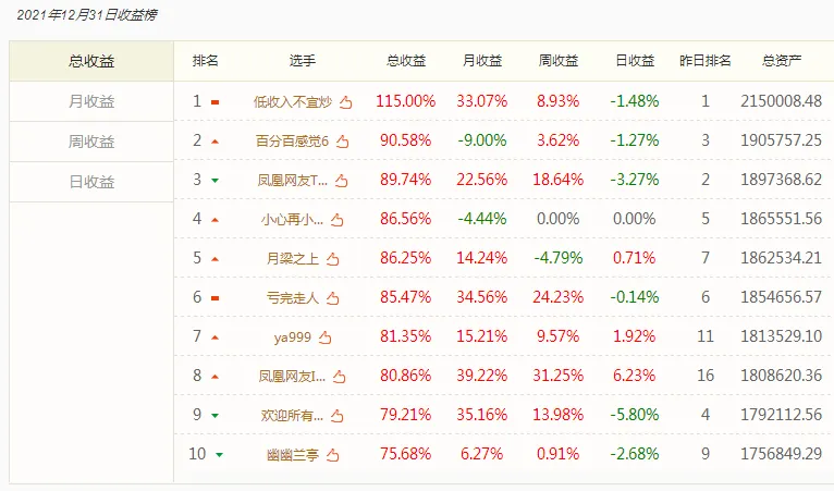 这次炒股比赛开始于9月1日,到2021年最后一个交易日,12月31日,比赛中我4个月收益率115%,排第一名。