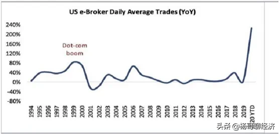 下图向我们展示了一个场景,即,美股正在出现前所未有的散户爆炸式交易的形态。