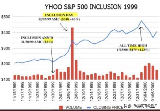 1999年12月8日,雅虎也正式成为标普500的成分股,玩的轨迹就和今年的特斯拉一模一样。