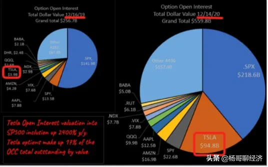 据统计,目前未平仓的期权合约中,特斯拉竟然占有解禁1000亿美元的份额。