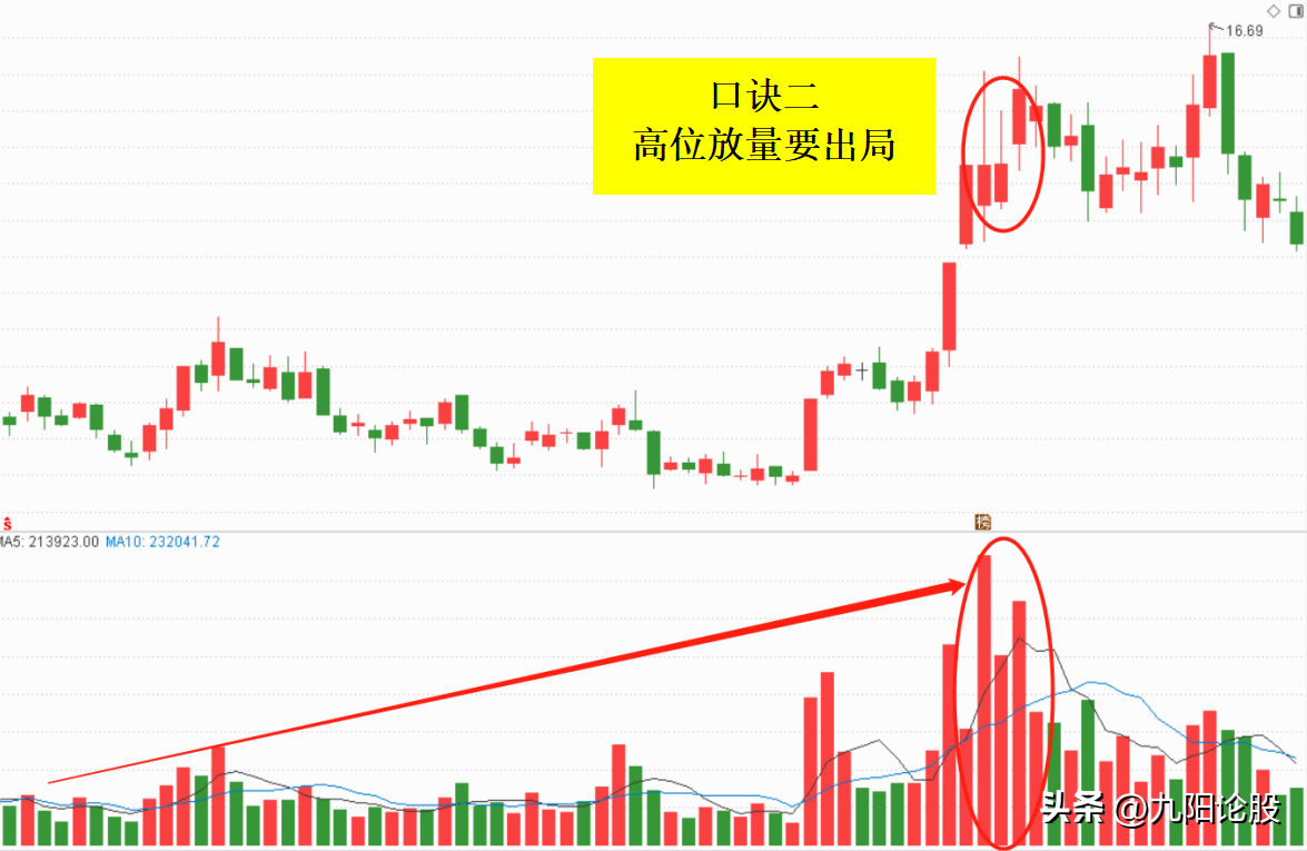 2,高位放量要出局。高位放量,代表多空分歧加大。主力有可能通过放量出逃,一旦遇到高位放量滞涨先跑为妙。