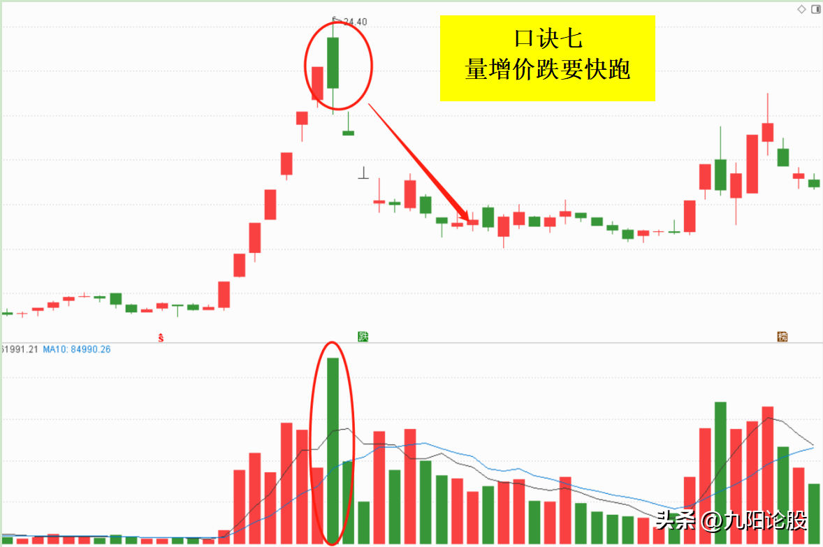 7,量增价跌要快跑。量增价跌,说明股价多头形势已经转变。开始有大量的空头低价甩卖,多头无力进攻,市场出现抢跑现象,此时赶紧快跑。