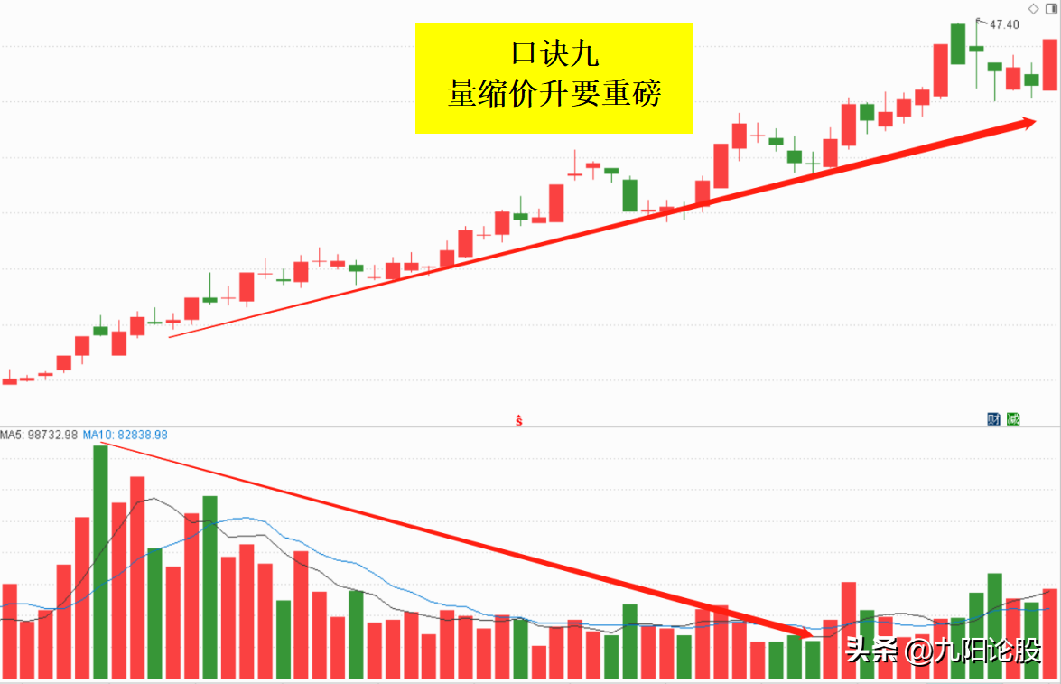 9,量缩价升要重磅。缩量上升比平量上升更强,说明主力高度锁筹。万事俱备,只欠东风。一旦起飞,追都追不上。此时,出手要狠,重磅出击。