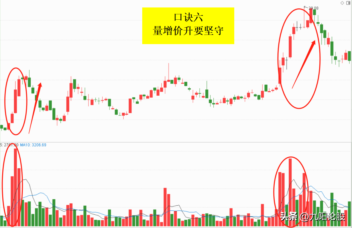 6,量增价升要坚守。量增价升在股价上升途中是正常走势,说明多头在一路进攻,只要还在持续就可安心拿着。