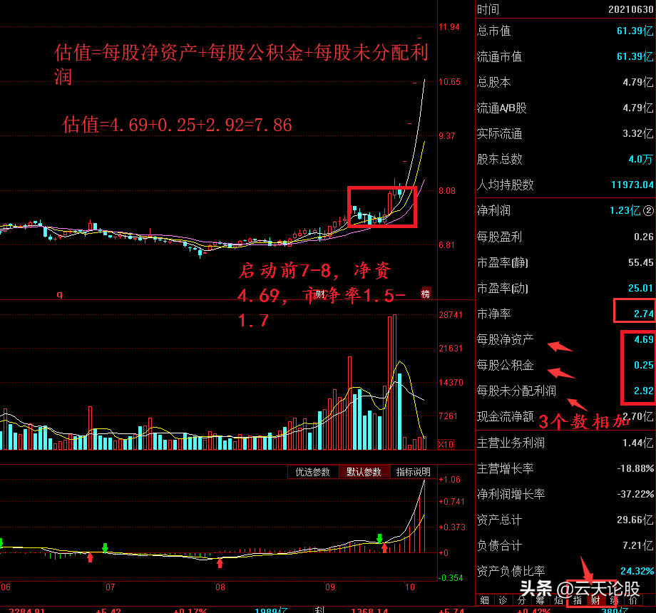 2. 个股估算下来,当前股价低估值的个股,但每股未分配利润和每股公积金都是正值的个股,说明股东未分配利润和储备资金充足,这是主力最喜欢的炒作价值股了。