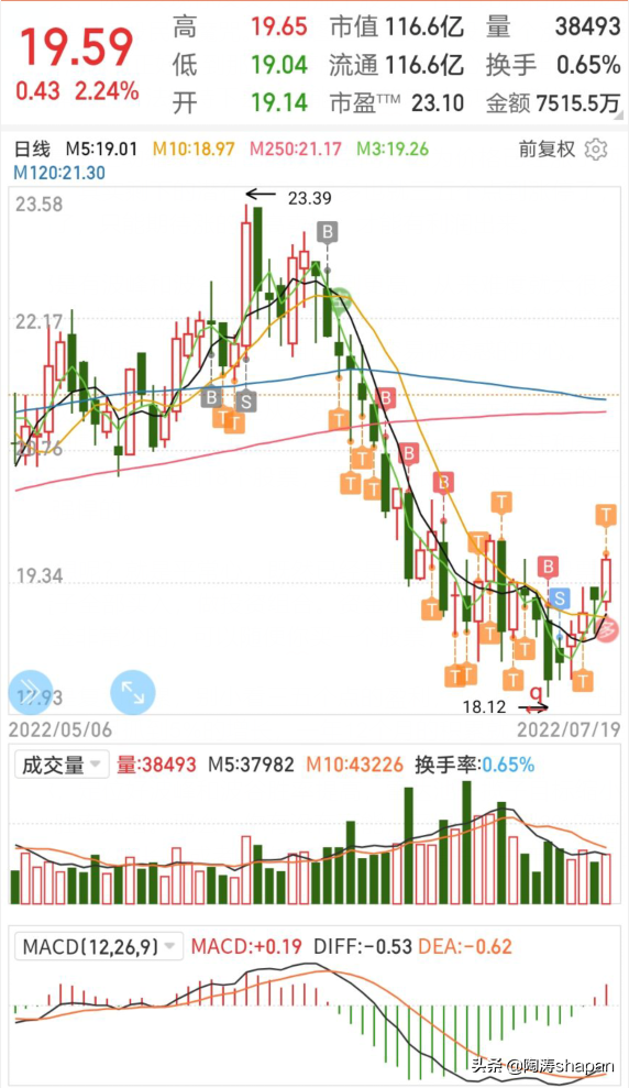 不要低估了普通股民自己的个人能力,一个人只要肯学习做交易,那么炒股赚钱就像开一个小超市没什么区别,炒股就是一门生意,每天不断的小生意,汇聚成大生意。下面图四,是一个同学买股票被套了,于是他抽空就借助沙盘定位做T,股价从23跌到了最低18,现在刚回到19元以上,他已经通过做T赚钱了。