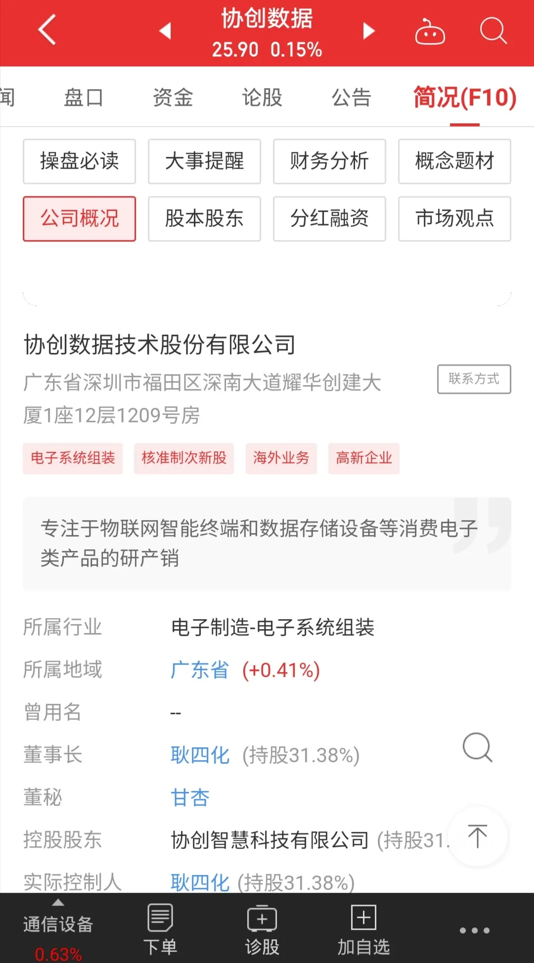 再看看协创数据的注册地址是广东省深圳市福田区深南大道。