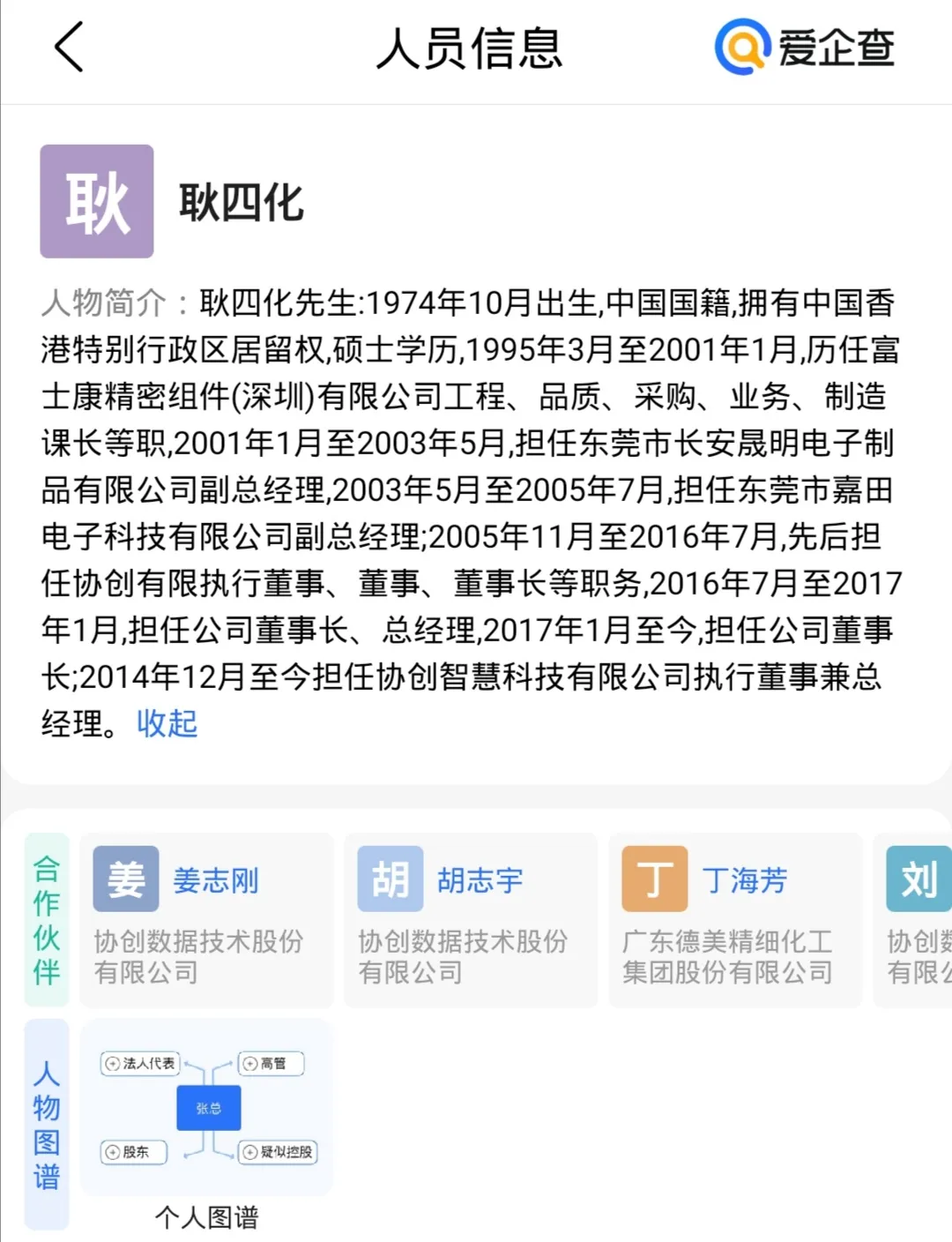 我们看到协创数据的实际控制人是耿四化,通过查询可知,耿四化1974年出生,中国国籍,拥有香港居留权。