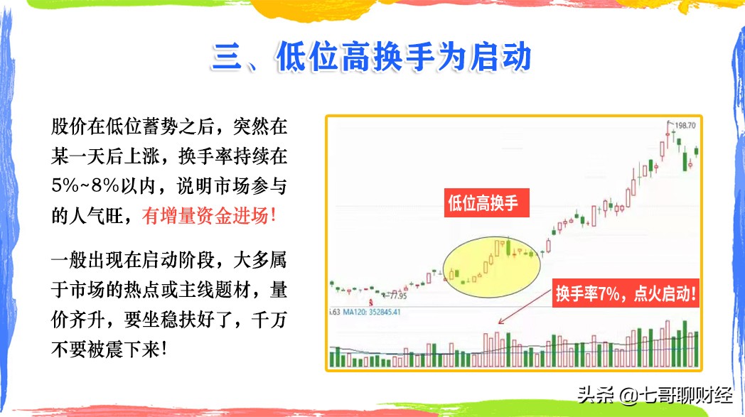 我把换手率的6种情况整理了图文解析,放在了文章下方,希望能够帮助到大家。如果对你有帮助,别忘了点赞关注,也可以转发给有需要的朋友。赠人玫瑰,手有余香。你们的点赞关注是对七哥最大的支持。祝各位朋友每天都能股市长虹!